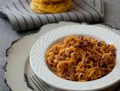 5) Cuoci la pasta e condiscila con il ragù alla bolognese.